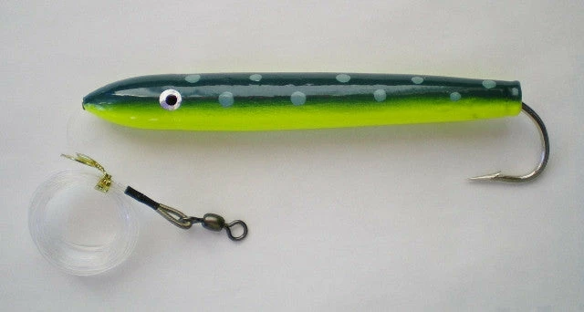 The Cedar Plug is one of the longest in-use lures in existence! From articles I have read, the Cedar Plug has been an effective trolling lureĀ for at least 2500 years!Ā OneĀ article stated they were probably trolled behind the multi-oar ships in the Mediterranean! I have had many years’ experience with these lures, and they never let me down! ExcellentĀ forĀ trolling for all Tuna Species, Wahoo, Dorado, and so many more. The action comes when you reach 8 or 9 knots, the drags are set, and when released into the wake, they start doing their thing, going crazy, dancing on the water, and shaking like a leaf! Injured fish appeal? Maybe. What I do know is that these bad boys work every bit as well now as they did thousands of years ago. Even though Cedar Plugs are now made out of many materials, many colors, sizes, and weights, they are all referred to as Cedar Plugs. Check these out… They work!