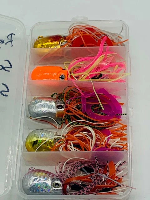 Looking for some rockfish candy, and want to save a little money in the process? look no further! We have here a five pack of great octo-style jigs that are sure to get bit. All jigs areΒ 80g.