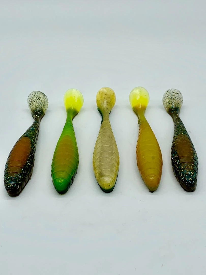 Looking for a strong paddle tailed grub, fat and 5 inches long? Check out our Gordo Grubs! These are hefty enough to cast without a jighead or additional weight for top and subsurface! Comes in 5 different color patterns, and are on sale for only $2.49 a pack! That is a savings of 40%!!! Try these out, and have fun for only pennies!