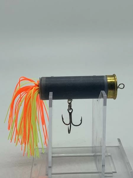Fishing Armory’s Topwater popper uses a 12-gauge shotgun shell! Comes with twin tails and treble hook. Perfect for topwater Bass fishing. Skirts vary in color.