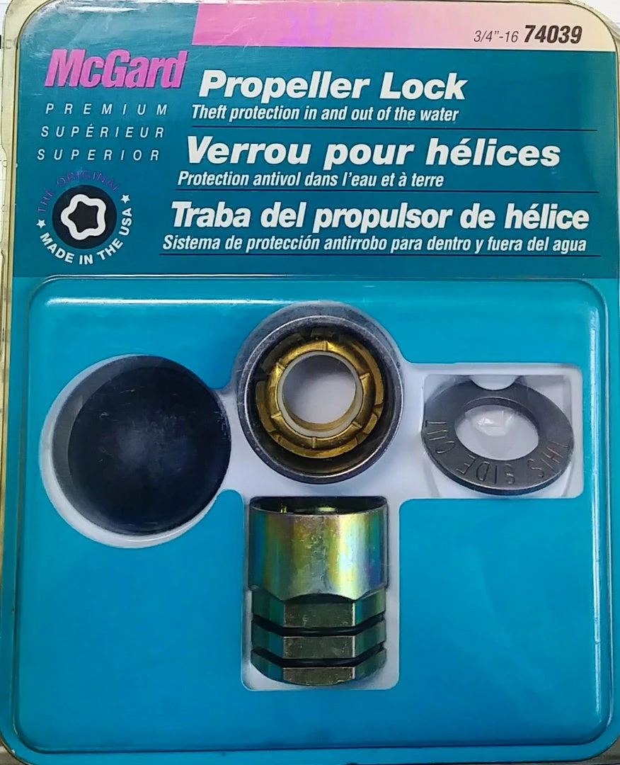 The best protection available against costly propeller theft! Once installed, the McGard propeller lock offers 24 hour protection during use, storage and transit. A free-spinning collar will turn if attacked by gripping tools without loosening the lock. Constructed of naval brass and hardened stainless steel for maximum security.