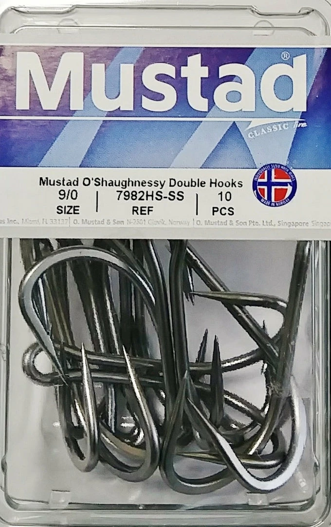 This 2X strong Classic Mustad saltwater double hook is designed for big hardlures, targeting Big Tuna, Giant Trevally and other hard-fighting species. It’s a great and reliable replacement belly-hook. The forged hook has a wide gap, in-line hook eye and a unique hook bend, forcing the fish into the elbow, making it virtually impossible to throw the hook.