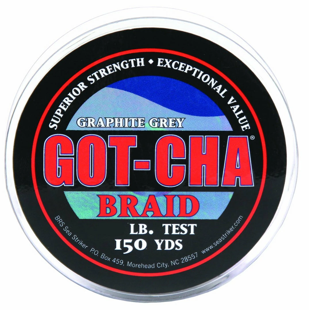Perfect for your next fishing trip, the Got-Cha Braid is 150-yards long, weighs 15-pounds and comes in a graphite grey color.