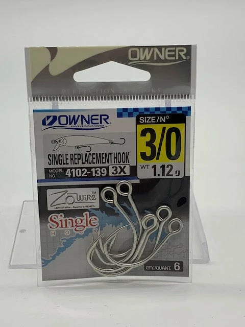 Single Replacement Hook XXX-Strong – Great for replacing trebles on large saltwater baits. Made with Zo-Wire, the wire strength is stronger than other traditional high carbon steel wires. This means smaller hook wire diameters for better penetration and a Super Needle Point that will not roll over or dull. These single hooks are less damaging to fish when practicing hook and release, and also safer for angler’s when handling fish on boat decks. These are perfect for handling the largest of Tuna (if the lure can hold up), and Giant Trevally. Features include Vacum-tinned finish for corrosion prevention, and Super Needle Point.