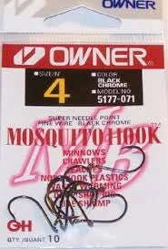 Fast becoming a favorite when using the down shot system for Bass, Walleye and Panfish. For light line use, it is self-setting, and the perfect hook for windy conditions or turbulent water where it’s difficult to keep a tight line. Ideal for rigging small live baits, for nose-hooking soft plastics, and for wacky wormin’ (hooking through middle of the worm and letting the ends dangle equally). Features include a black chrome finish and a fine-wire forged shank with offset Super needle Point. Available in Black Chrome and Red finishes.